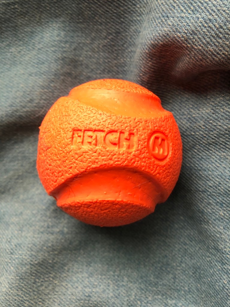 It’s been two weeks and that ball is seldom out of Henry’s sight unless he’s sleeping. (We literally have to take it away from him at bedtime most nights.) He tosses it, chases it, bats it around with his front legs. He licks it. Sometimes chews it. And other times he just gazes at it. It’s his favorite thing. It seems Henry just needed to “find” his own toy.