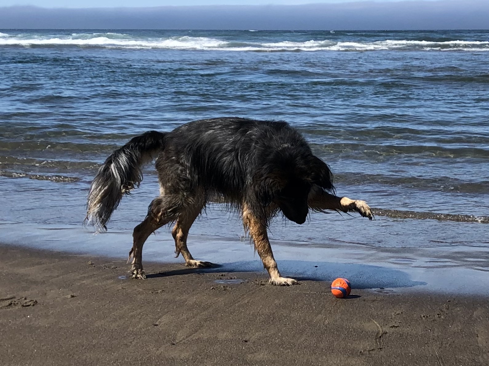 He is a master. And he now attracts crowds. People frequently stop just to watch him play all by himself. Every time we go to the beach at least a half-dozen people tell me, “I’ve never seen a dog do that! Will he just keep doing that all day?” The answer is “Yes.”